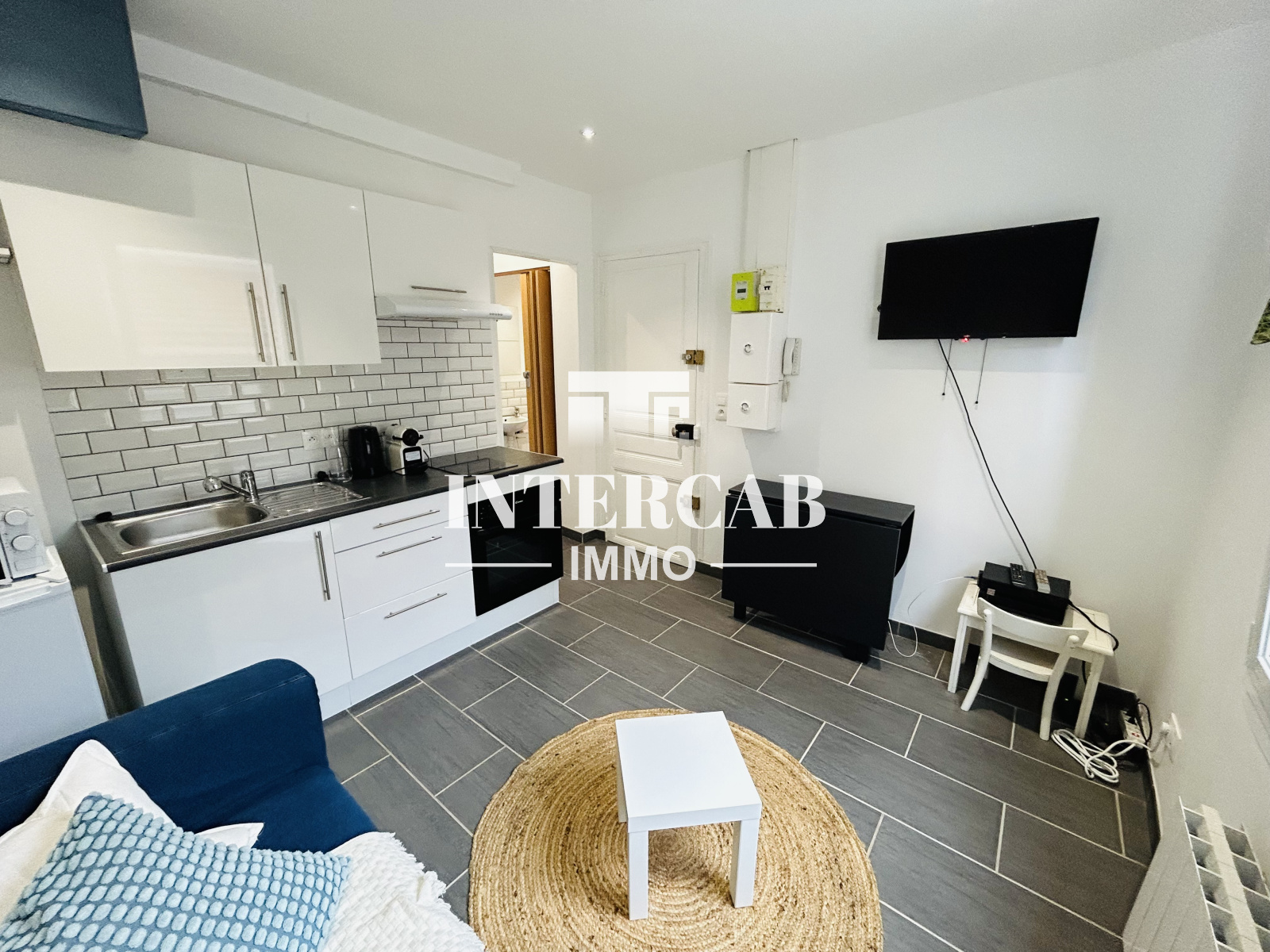 Idéalement aménagé, se compose d'une pièce de vie avec coin cuisine, une chambre séparée avec dressing, une salle de douche avec machine à laver et des WC indépendants.
