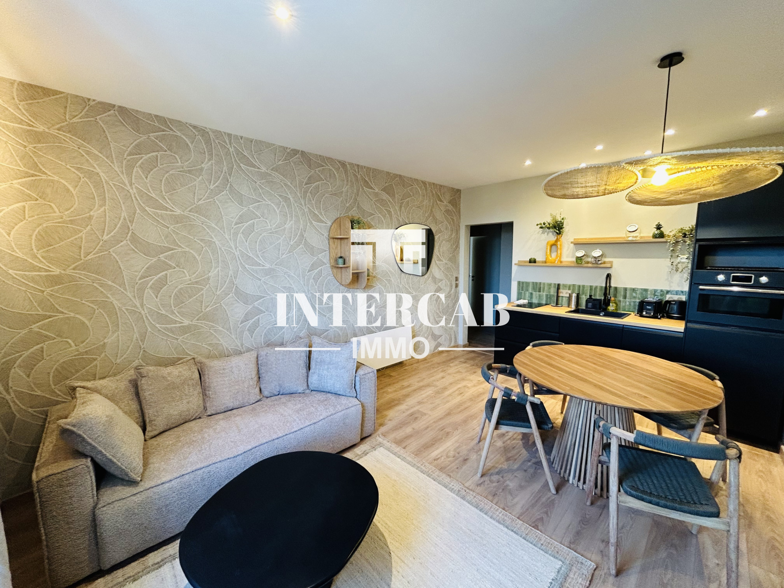 Se compose d'une pièce de vie avec cuisine aménagée et équipée, deux chambres, un jolie salle de douche et des WC séparés.