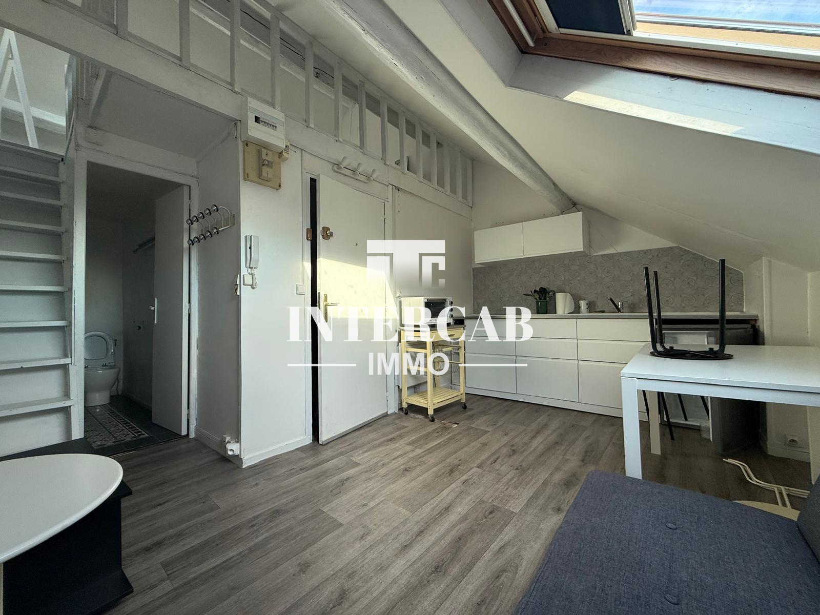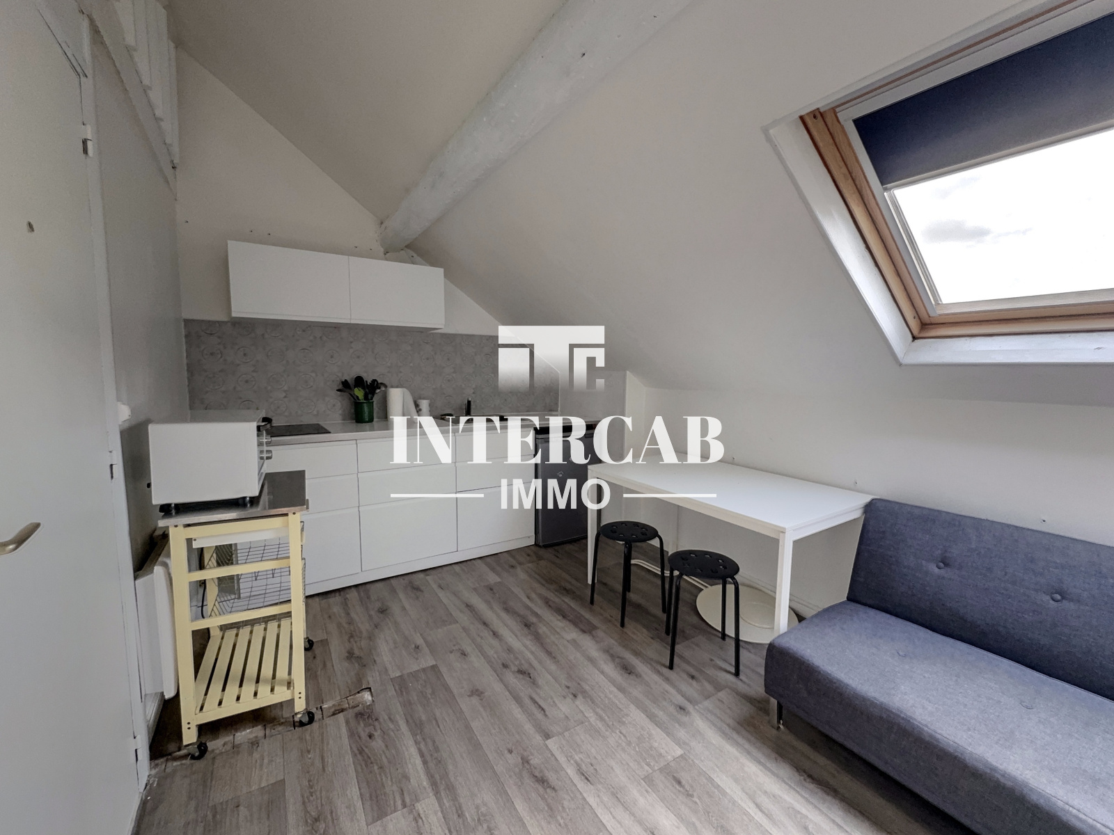 Type 2 en duplex d'un surface de 37,24m² au sol et 20,40m² en loi carrez offrant une belle pièce de vie, une cuisine équipée neuve, une salle de douches neuve et une chambre.