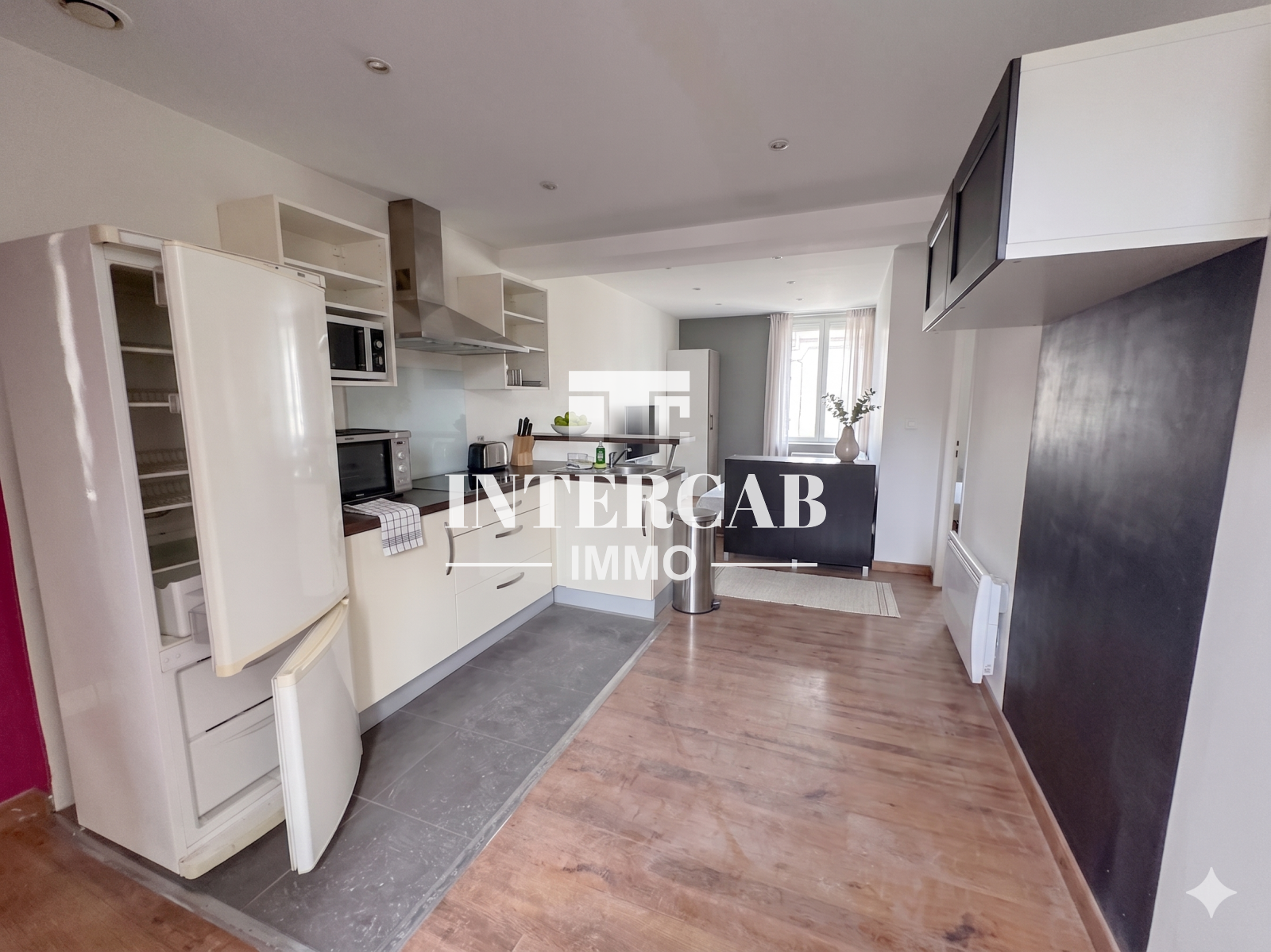 Au deuxième étage d'un petit immeuble, cet appartement lumineux est composé d'une pièce de vie et d'un espace cuisine, une chambre séparée, salle de douches avec WC.